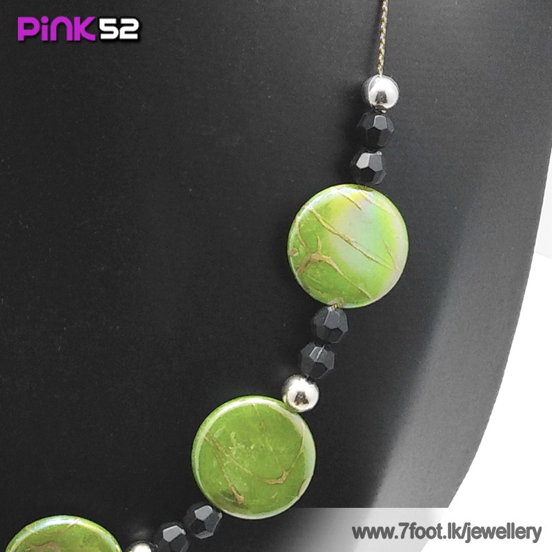 Green with lines pebble bead necklace.