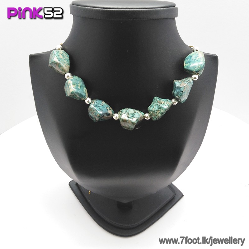 Green mixed art stone bead necklace.