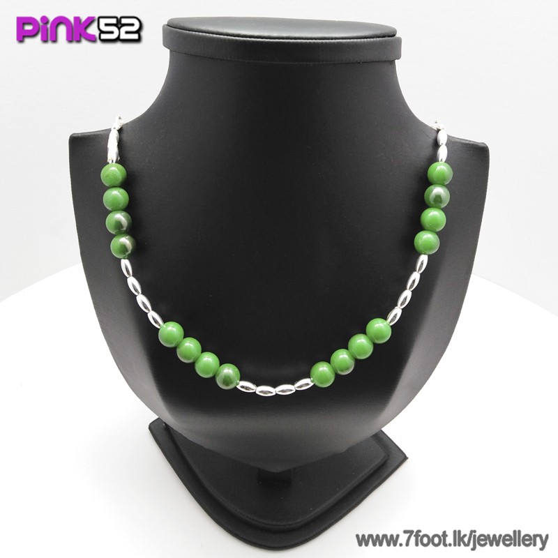 Green bead long necklace.