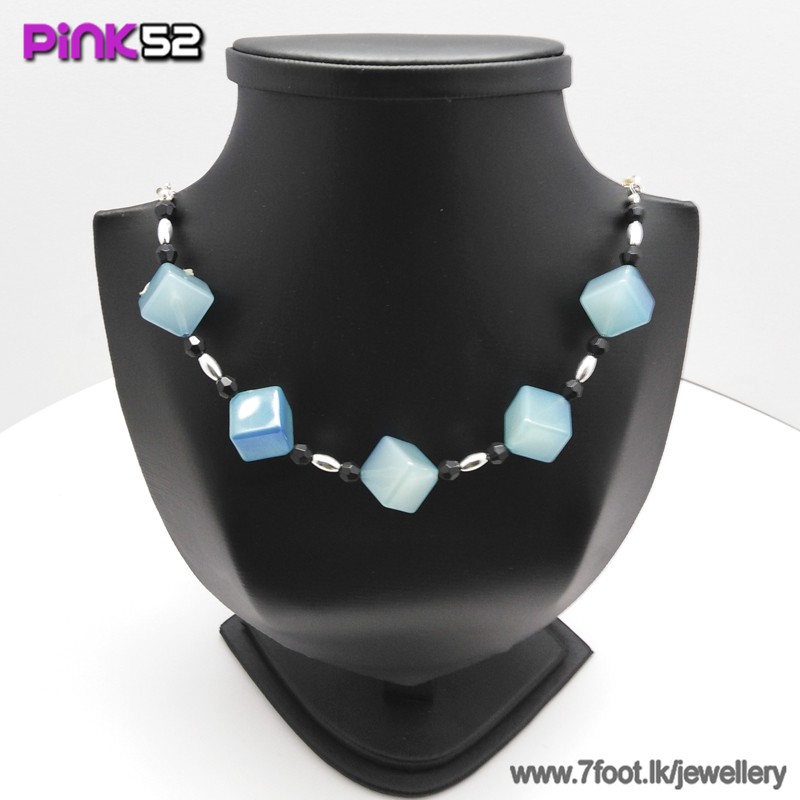 Blue mixed cube bead necklace