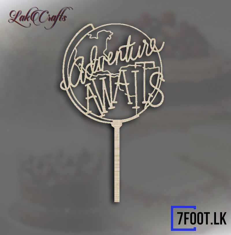 "Adventure Awaits " cake topper.