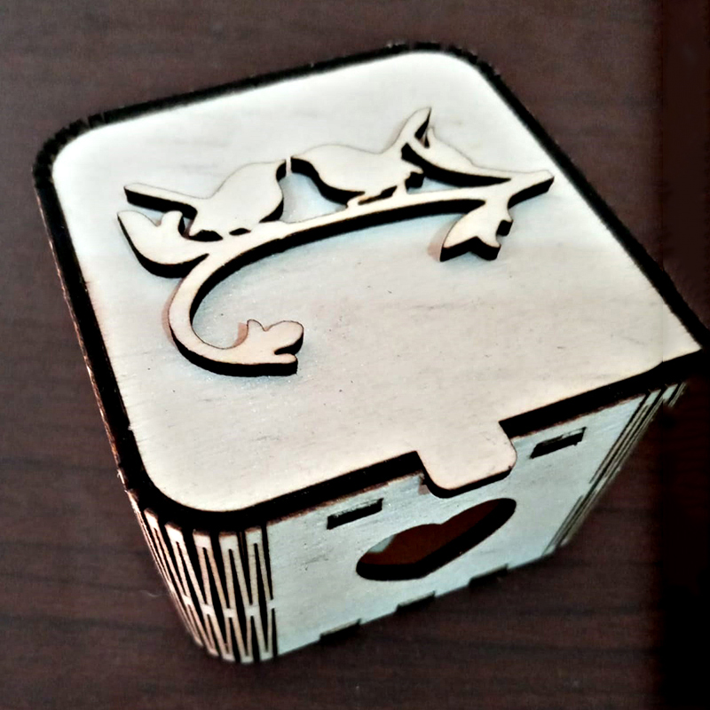 Stylized Laser Cut Wooden Cake boxes.