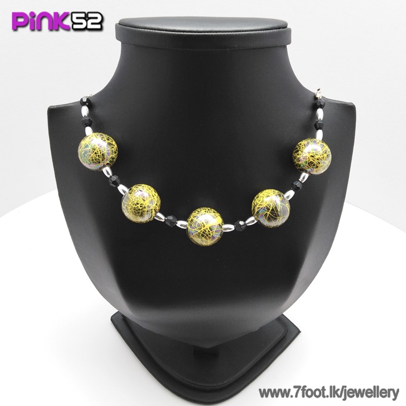 Yellow jumbo electro ball bead necklace.