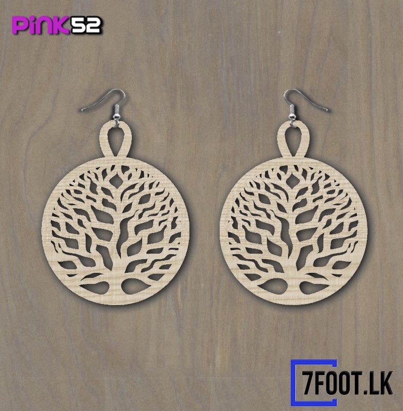 tree inside circle shape wood earring