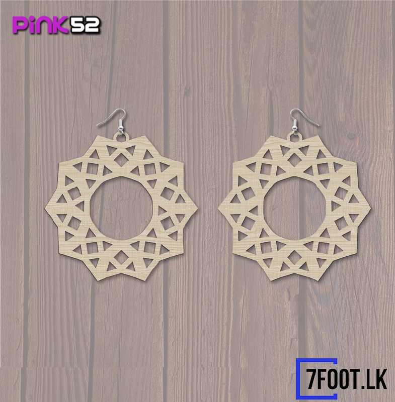 flower inside a square shape wood earring