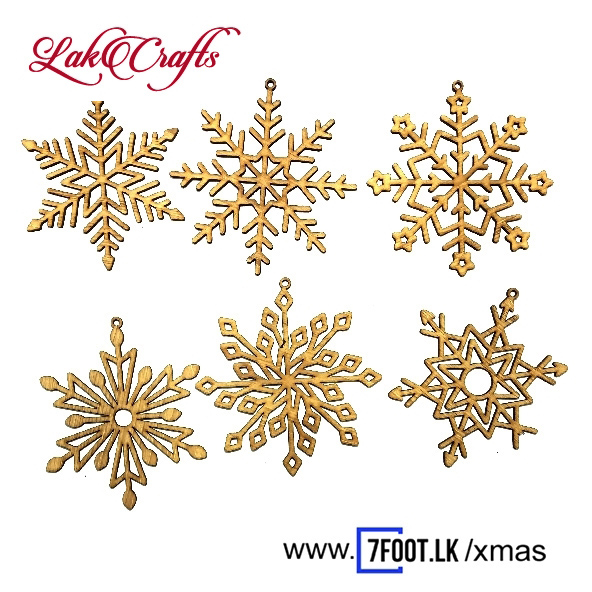 Snow flakes chrismas tree emblishment. 6 pieces. plywood. Laser cut. 2.2mm thick each. aproximate size of a piece 100mm*100mm