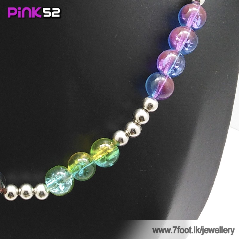 Red-green-purple glossy bead necklace