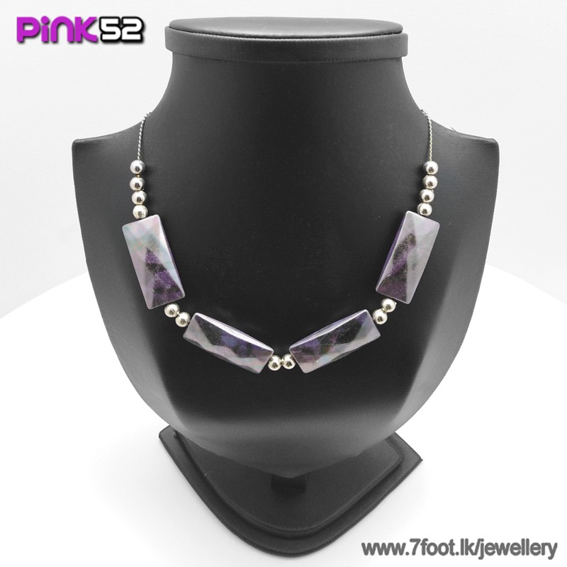 Recrangle purple-black mixed bead necklace