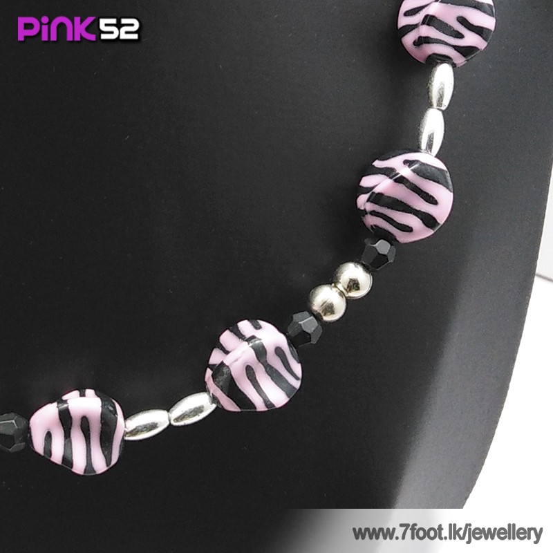 Pnk zibra bead necklace.