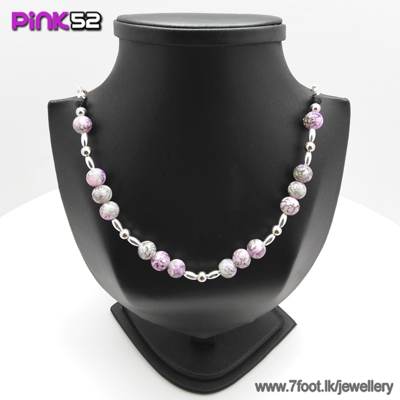 Pink with white mixed bead necklace.
