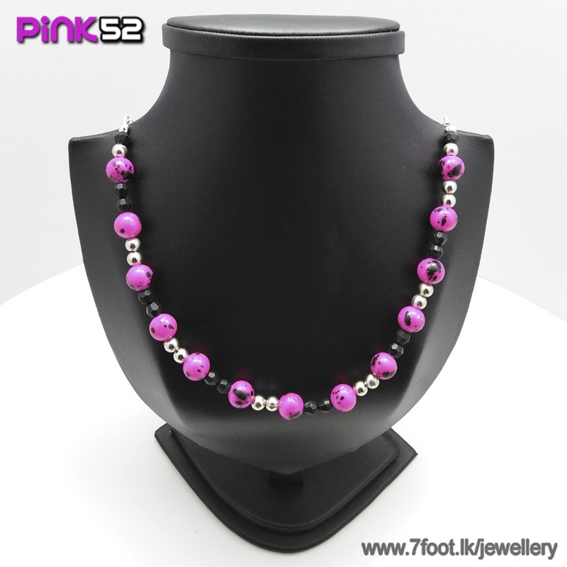 Pink with black long bead necklace.