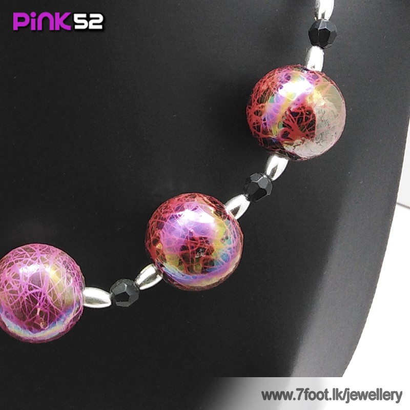 Glossy pink bead necklace