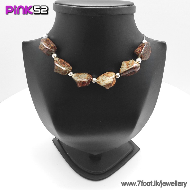 Pink with black lines pebble bead necklace