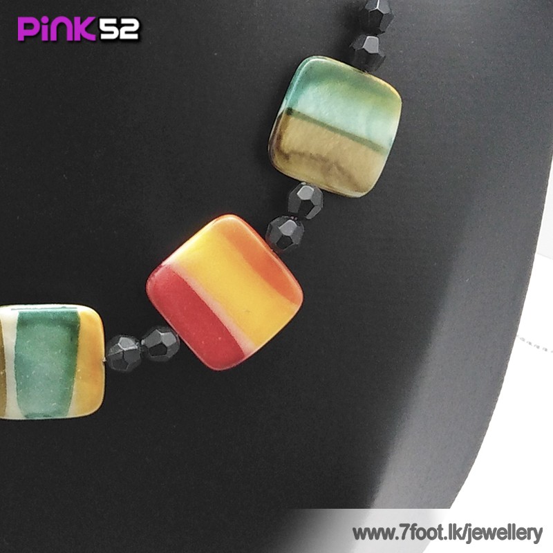Orange-green-brown squre bead necklace