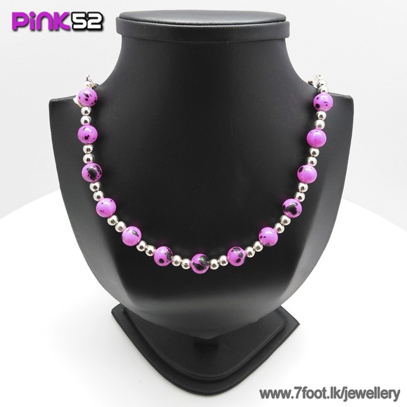 Mixed pink long bead necklace.