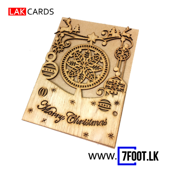 Laser cut wood Christmas Card with Box Snowflakes with rain dears & Merry Christmas text emblem (foldable)