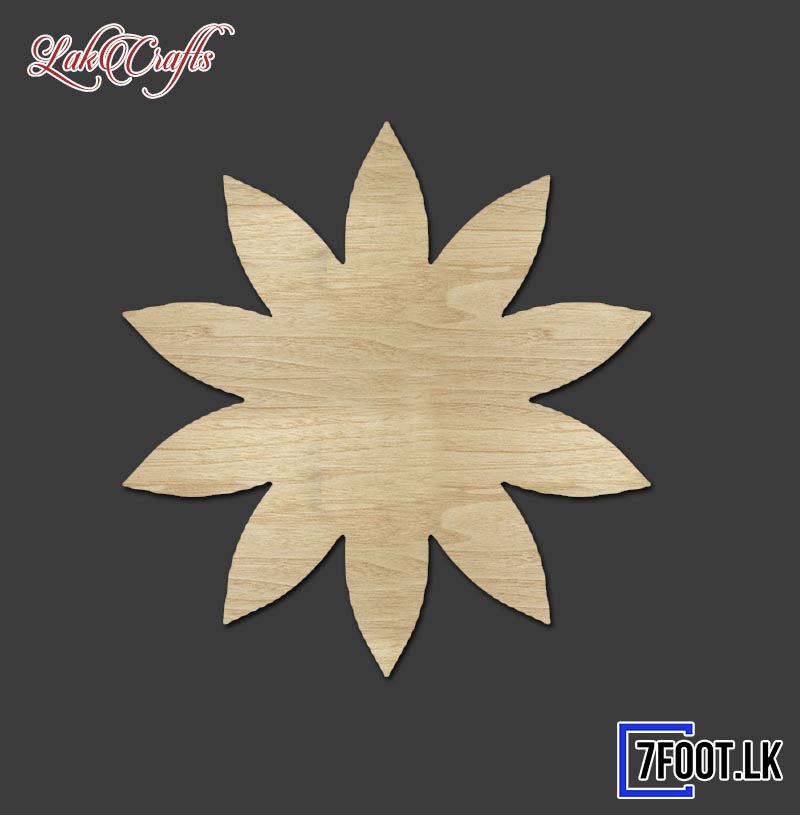 Laser cut flower with pointed petals emblishments plywood