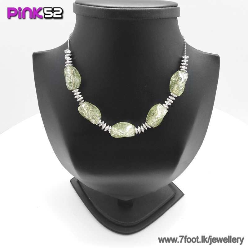 Green glossy stone bead necklace.