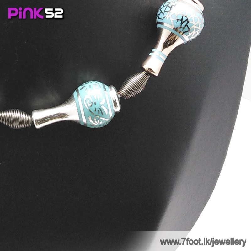 Blue pot bead necklace.