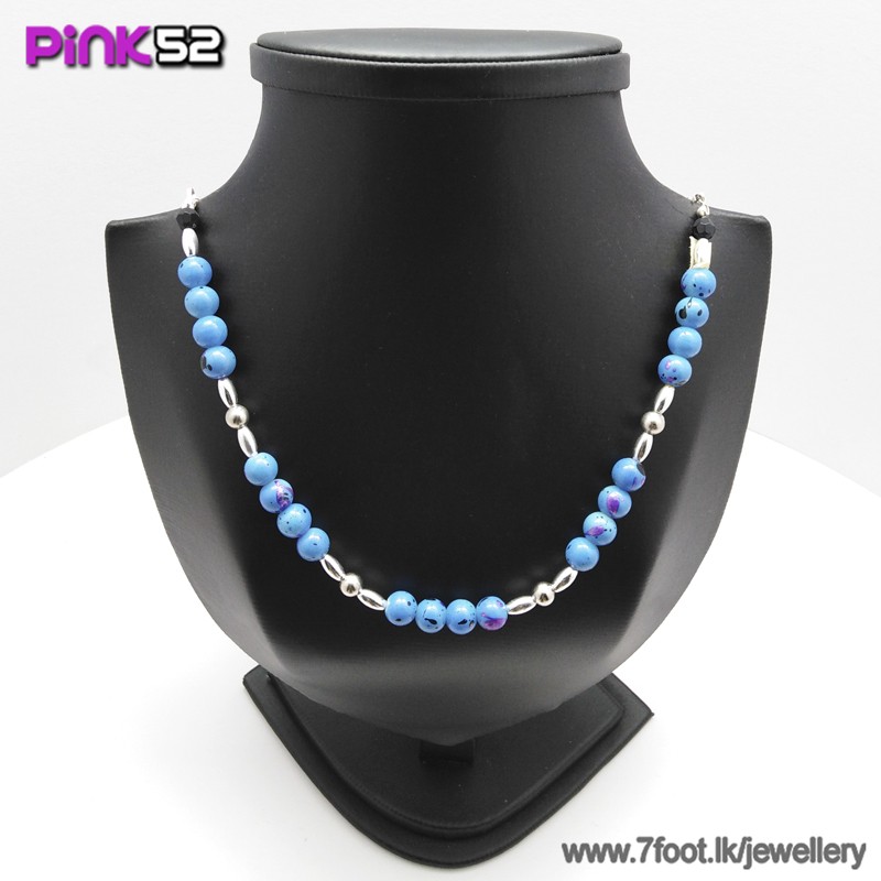 Blue and black mixed bead necklace.