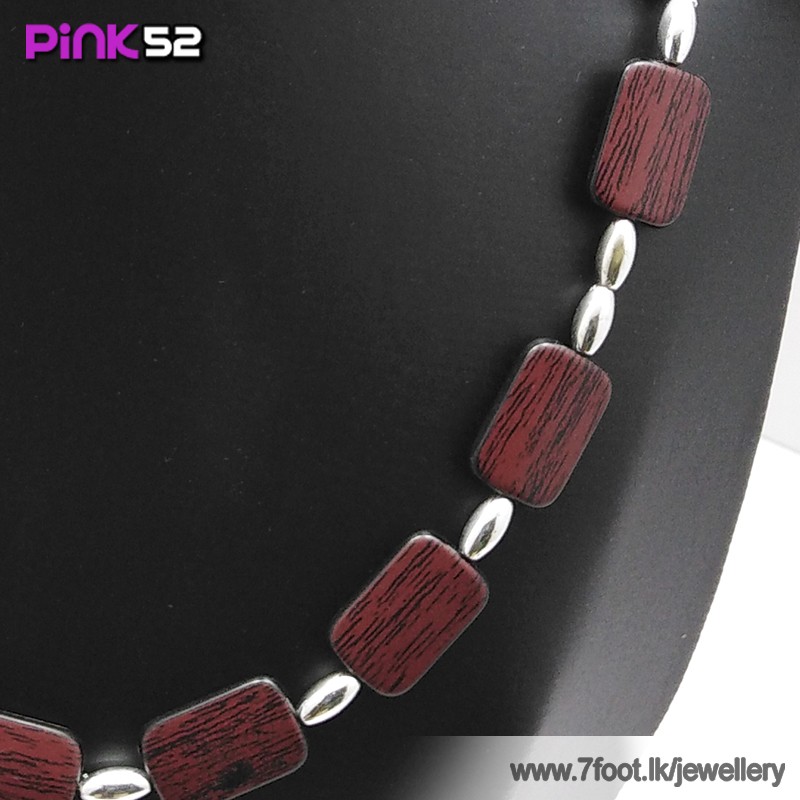 Wood textured rounded coner rectangle bead necklace.