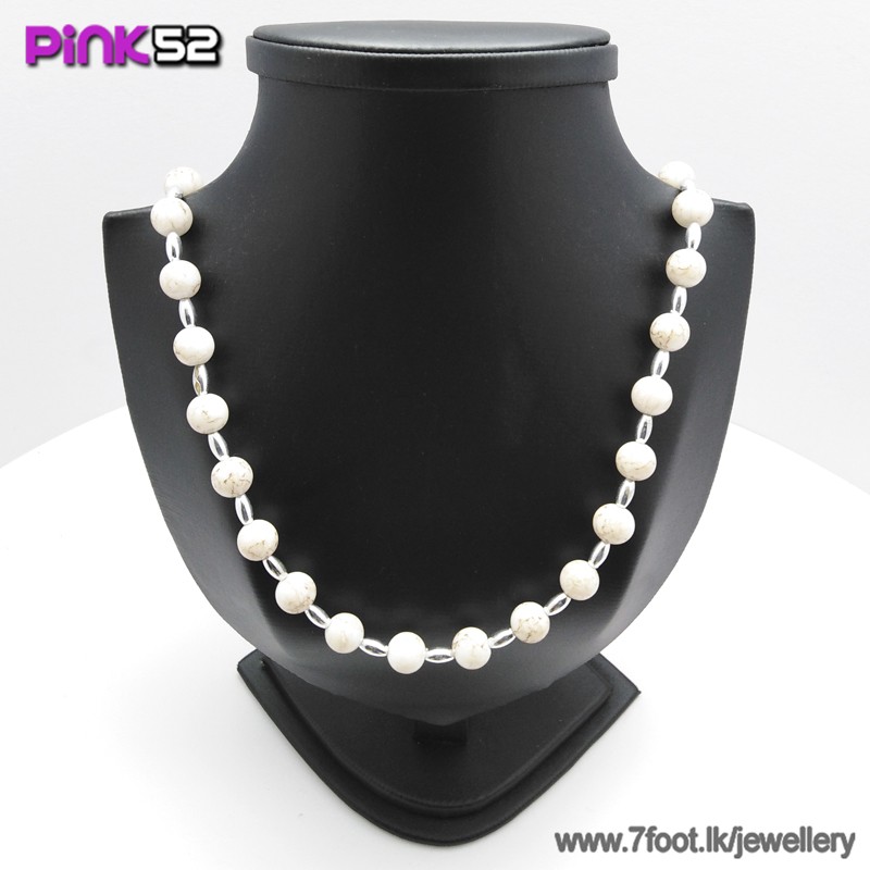 White long bead necklace.