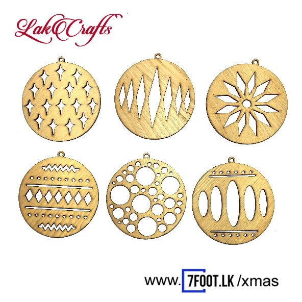 Round chrismas tree emblishment. 6 pieces. plywood. Laser cut. 4.4mm thick each. aproximate size of a piece 180mm*180mm