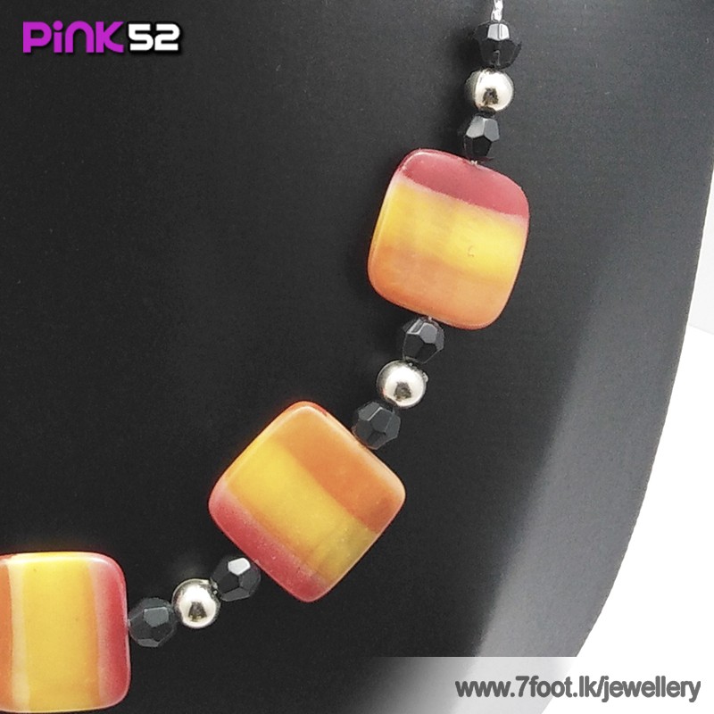 Red-orange-yellow squre bead necklace