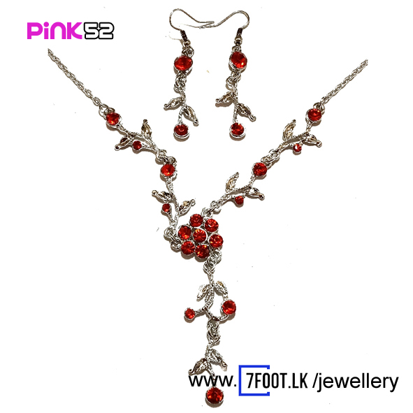 Red color party necklace with earrings