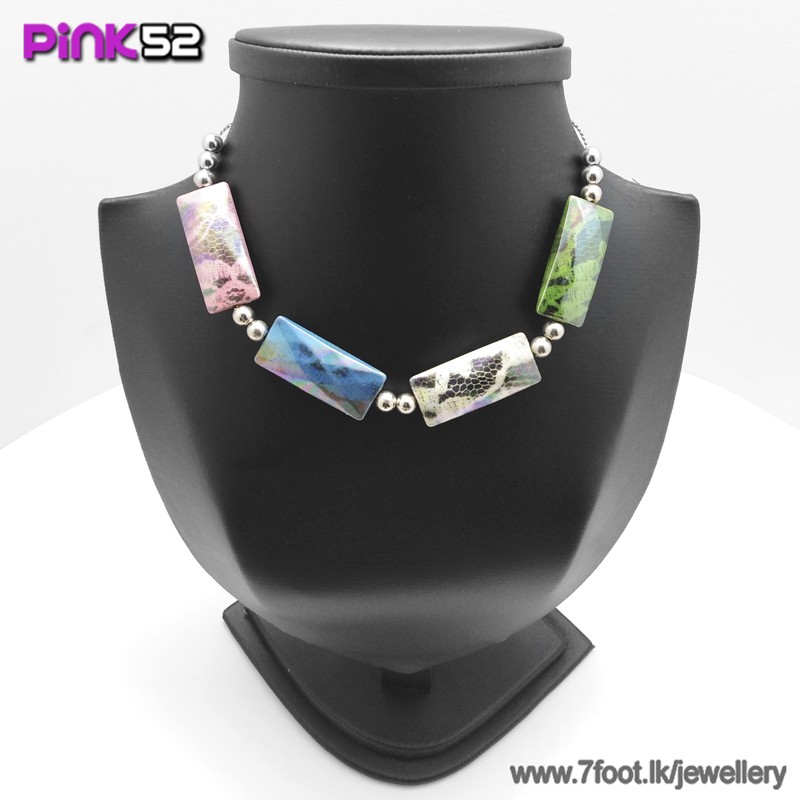 Recrangle mixed colour bead necklace