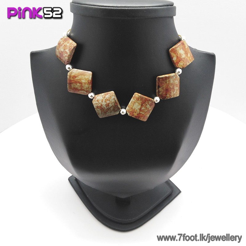 Orange mixed squre bead necklace.