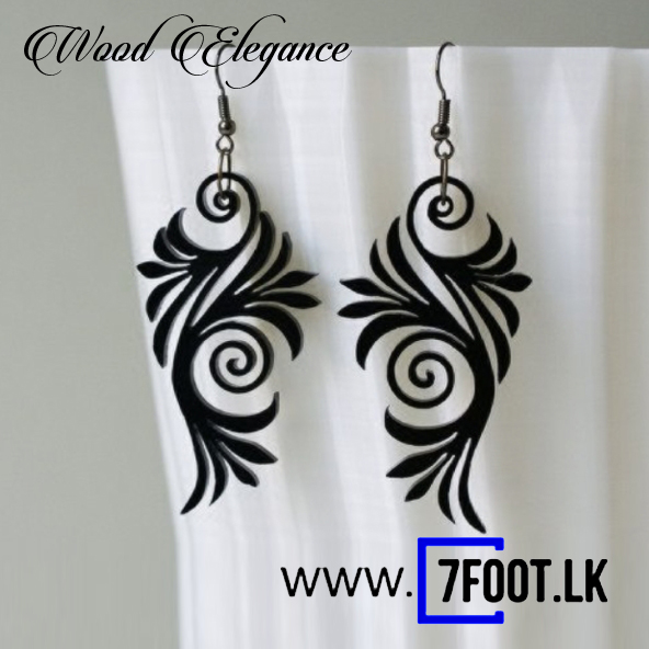 leaf pattern wood earring set